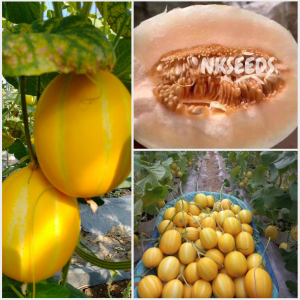 Là giống dưa lê, quả màu vàng cam, có sọc, ruột cam